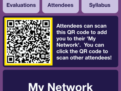 Attendees can scan the QR code below in the mobile app to add you to their 'My Network'. You can also click on the QR code in the app to scan other attendees.